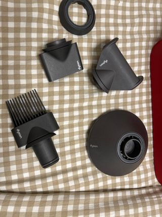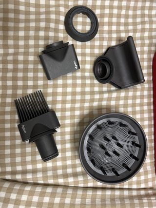 Conjunto de accesorios para el secador de pelo Dyson Supersonic. - Difusor. - Concentrador. - Accesorio de alisado. - Peine. - Accesorio de suavizado.
