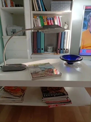 Lámpara de mesa con un diseño clasico y elegante, perfecta para cualquier espacio de trabajo o estudio. Su acabado de laton pulido y pintado. Modelo Gala. - Base y brazo metálicos. - Pantalla orientable. - Diseño curvo y estilizado.