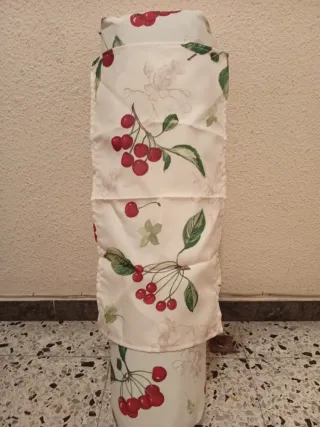 Set de cojín para bolillos con accesorios. - Cojín con estampado de cerezas. Medidas 70 cm de largo x 25 de diámetro +Pieza espuma para trabajos más grandes,cojín agujas ,cubre cojín y funda transporte