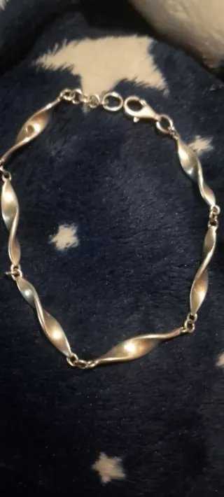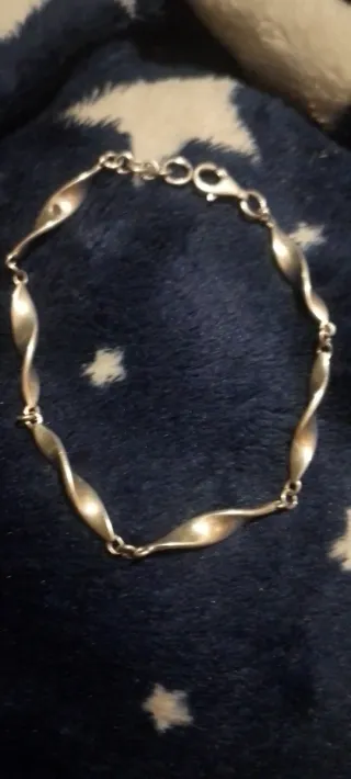Elegante pulsera de plata pura con un diseño retorcido. Tiene barios sellos incruido 925 - Material: Plata pura - Cierre de mosquetón