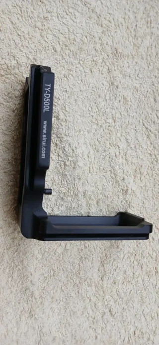 Plato L de la marca Sirui TY-D500L diseñado para la cámara Nikon D500. - Fabricado en aluminio negro. - Diseño en L para un agarre mejorado. - Incluye tornillo de montaje y llave de apriete. En su caja.