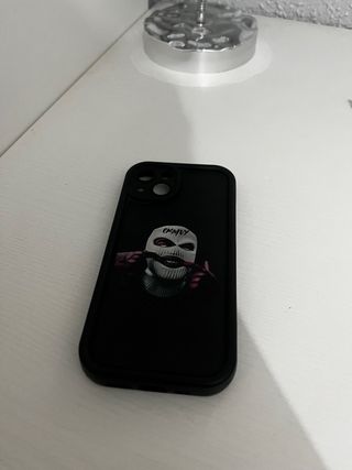 Funda negra para iPhone 13 con diseño. - Diseño de pasamontañas. - Acabado mate.