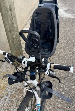 Silla portabebés delantera Thule Yepp Nexxt Mini. - Diseño moderno y ligero. - Acolchado cómodo para el niño. - Sistema de arnés de seguridad. - Fácil de instalar y retirar. Se añade el Yepp mini windscreen (parabrisas transparente) y el protector anti golpes (Thule Yepp mini handlebar, padding acolchado de manillar blanco) Y dos anclajes para poder llevarlo en dos bicicletas. Nuevo con todo costaría 200€.