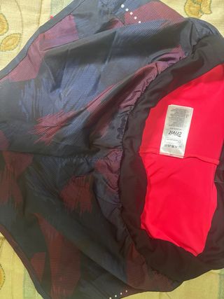 Pantalón deportivo con un diseño moderno y llamativo. - Tejido con estampado de hojas en tonos azules y rojos. - Forro interior de color fucsia. - Cintura elástica para mayor comodidad.