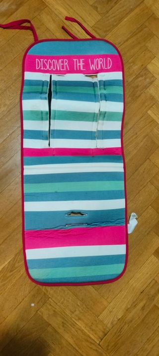 Colchoneta de rayas para silla de paseo de bebé. Marca Bbest, comprado en El Corte inglés. Uso un mes en verano Tengo 2 unidades iguales. Precio por unidad. Las regalo si compras el carro gemelar de mi perfil.
