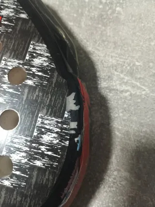 Raqueta de pádel Adidas modelo Metalbone Youth. - Diseño en color rojo y negro. - Logo de Adidas en la cara. - Superficie con patrón de agujeros.