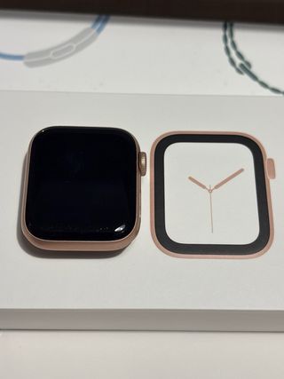 Apple Watch Series 4 con conectividad GPS y celular en acabado dorado/rosa. - Incluye correa deportiva rosa. - Caja original y accesorios. - Muchas correas