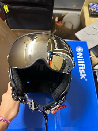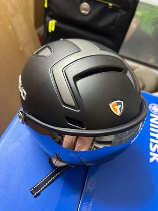 Casco de esquí con visor integrado. Diseñado para ofrecer protección y comodidad en la montaña. - Visor con acabado espejo. - Sistema de ajuste. - Acolchado interior.