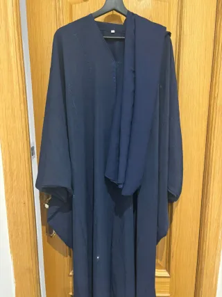 Conjunto de abaya y velo en color azul marino, ideal para visitar la mezquita. - Abaya con detalles de pedrería. - Velo a juego. - Comprado en la Mezquita Sheikh Zayed de Abu Dabi