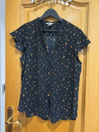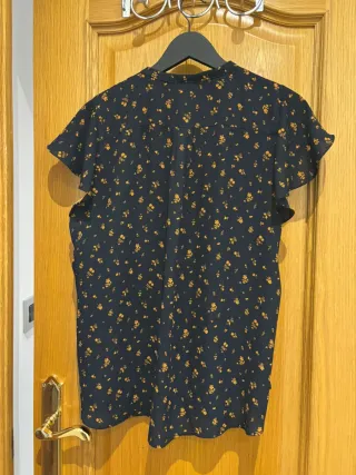 Camisa con estampado floral de la marca H&M - Diseño con cuello mao y escote en V. - Detalle de plisados en la parte delantera. - Mangas cortas con volante.