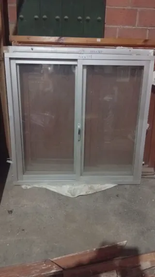 Ventana corredera de aluminio con vidrio ideal para separar ambientes o para exteriores. - Marco de aluminio. - Diseño de dos hojas correderas. Medidas escritas en cada ventana