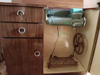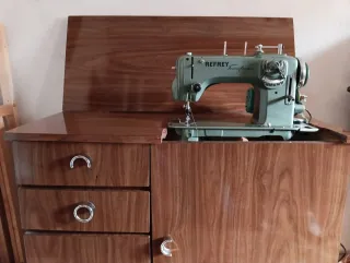 Máquina de coser Refrey en color oliva. - Modelo automatizado. - Diseño clásico.