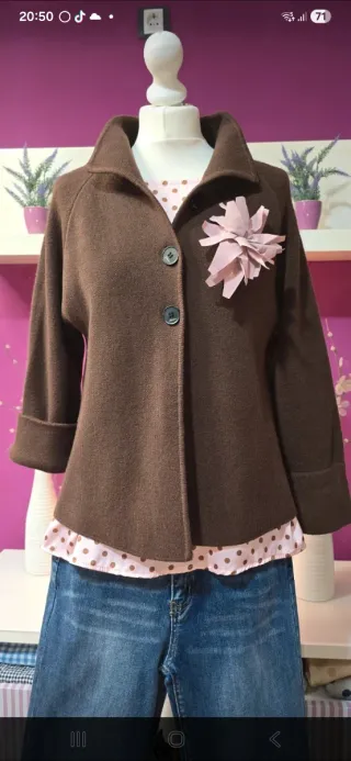 Chaqueta marron chocolate 🍫 con diseño trapecio de la firma Italiana Firenze con punto 🧶 de viscosa, gran calidad 👌 que no hace bolas Talla unica que podria dar entre la 38 a 44 dependiendo de lo holgada que se quiera llevar, comprobar SIEMPRE medidas de las fotos. Las prendas del outfit se venden aparte en el escaparate Sin estrenar Diseño y fabricación ITALIANA