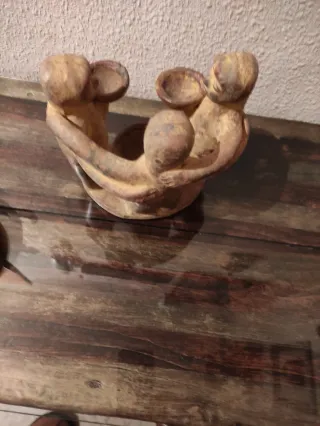 Original portavelas decorativo con figuras. Artesanal - Elaborado en cerámica y terracota. - Tonos marrones y rojizos.