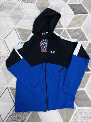 Conjunto deportivo de chándal. - Chaqueta con capucha y cremallera completa. - Pantalón largo. - Diseño con paneles laterales. - Logos bordados