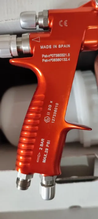 Pistola de pintar en perfecto estado, sin ningún uso. Boquilla paso 1.3 XL Clear Sirve tanto para pintar al agua como al disolvente, acabado excelente. - Incluye depósito. - Incluye cepillo de limpieza. No sé ha utilizado nunca, con factura de compra. Precio nueva 337€