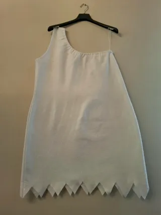 Conjunto de vestido y estola a juego. - Vestido sin mangas con borde inferior en picos. - Estola con manchas negras. - Diseño divertido y original.