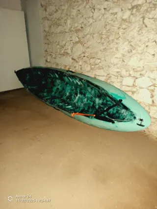 Se vende o se cambia por pato kayak de 2 plazas es para 2 adultos y un niño con sus asientos y remo está recién pintado antes era azul