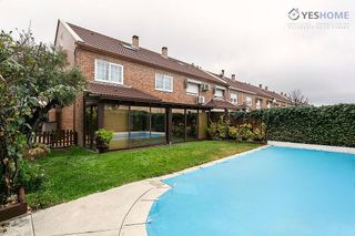 EN VENTA CHALET PAREADO DE TRES PLANTAS Y PISCINA PRIVADA EN VILLANUEVA DE LA CAÑADA. YES HOME | Servicios Inmobiliarios, comercializa la venta de este chalet pareado con Piscina en Villanueva de la Cañada. Ubicado en zona residencial y a tan solo ocho minutos andando del Ayuntamiento de Villanueva de la Cañada. Zona dotada con amplia oferta comercial, gastronómica y variedad de servicios cercanos. Con fácil acceso en transporte público y vehículo privado. Este chalet edificado en el año 1995 sobre una parcela de 313 m2 cuenta con una superficie construida de 256 m2 distribuidos en tres plantas: • En planta principal: - Hall de entrada, - Amplio y luminoso salón-comedor con grandes ventanales que ofrecen el acceso a la Terraza Acristalada, al Jardín y a la piscina privada de agua salina. - Cocina independiente totalmente amueblada. - Chimenea. - Despensa. - Un aseo de cortesía. • Primera planta: - Amplio dormitorio principal con grandes ventanas, dotado con dos armarios empotrados y cuarto de baño en suite. - 4 cómodas habitaciones. - Un baño completo adicional. • Segunda planta: - Amplia Buhardilla con 3 dormitorios con ventanas tipo Velux y Aire Acondicionado. - Pre Instalación para Baño Completo. • Zona Exterior: - Se destaca por la Piscina Salina de gran tamaño frente a la Terraza acristalada de reciente construcción. Además al frente de la casa se encuentra una cómoda Pergola de madera que invita el disfrute del exterior y jardines. Esta amplia vivienda lista para ingresar a vivir, Posee sistema de climatización por Gas Natural en todos los espacios, ventanas tipo Climalit y Aire acondicionado y ofrece además diversas opciones de adaptación a las necesidades de los nuevos propietarios. Una excelente oportunidad para aquellos que buscan un lugar tranquilo y cómodo para vivir, o como inversión segura y atractiva a través de su arrendamiento a estudiantes, en una zona de alta demanda. ¡No esperes más y contáctanos para obtener más información! Estamos a su