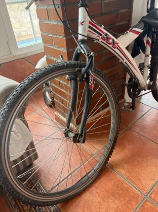 Bicicleta de montaña Sporty 1.0Y con ruedas KX. - Cuadro blanco con detalles en rojo y negro. - Manillar negro. - Sillín negro. - Ruedas de 26 pulgadas.
