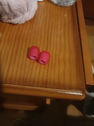 Dos tapones de plástico de color rosa para válvulas de bicicleta o coche. Tienen un diseño acanalado. - Color: Rosa - Material: Plástico - Cantidad: 2 unidades Los cambio por otros o los vendo.