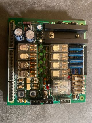 Placa de maniobra para sistemas Excelsior. Componente electrónico con varios relés y condensadores. - Múltiples conectores de entrada/salida. - Interruptor selector. - Indicadores LED verdes. Funcionaba pero lleva mucho tiempo sin usarse