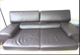 Sofá de tres plazas con una combinación de materiales. - Parte frontal y asientos de tela. - Laterales y base de piel. No se envía, solo venta en persona.