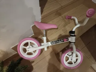 Bicicleta de aprendizaje Chicco Pink Comet, ideal para los primeros pasos en el mundo de las dos ruedas. Está en perfecto estado, casi nueva y con muy poco uso. - Color blanco y rosa. - Diseño ligero y manejable. - Ruedas de goma. - Asiento ajustable en altura.