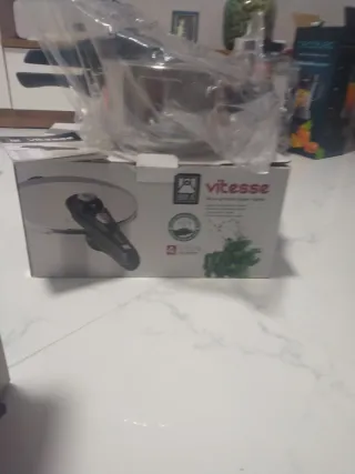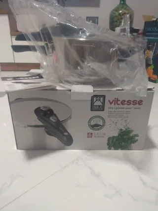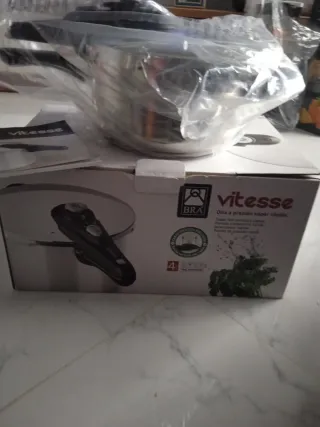 Olla a presión de la marca Vitesse con capacidad de 4 litros. Ideal para cocinar de forma rápida y eficiente. - Capacidad: 4 litros. - Marca: Vitesse. - Modelo: Super fast pressure cooker.