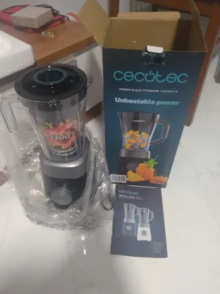 Licuadora Cecotec Power Black Titanium con 1300W de potencia y jarra de 1.5L. - Diseño elegante en color negro y titanio. - Incluye manual de instrucciones.