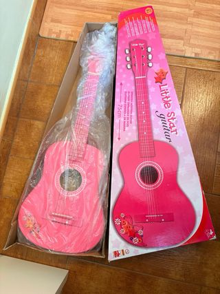 Guitarra española de madera para niños, color rosa. - Marca: Little Star. - Tamaño: 75cm. - Diseño con estrellas y flores.
