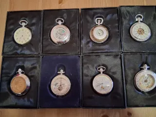 Conjunto de relojes Hermitage con mecanismos visibles y acabado plateado. - Diseño elegante con detalles en la esfera. - Cajas de presentación incluidas.