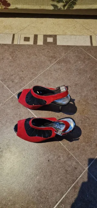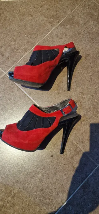 Elegantes zapatos de vestir para mujer. - Diseño peep-toe con detalles en negro. - Tacón fino. - Cierre de hebilla.
