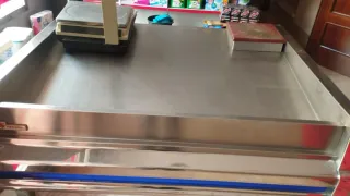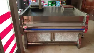 Mostrador profesional de acero inoxidable para pescadería. - Material: Acero Inoxidable (INOX). - Diseño robusto y fácil de limpiar. - Ideal para negocios de venta de pescado.
