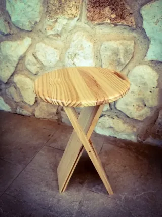 Taburetes plegables nuevos, en madera maciza barnizado color natural. Medidas abierto 45x30x30cm. Medidas cerrado 71x30x4cm. Precio por unidad. Descuentos para varias unidades. Pregunta sin compromiso.