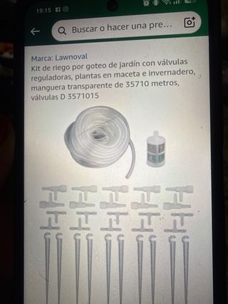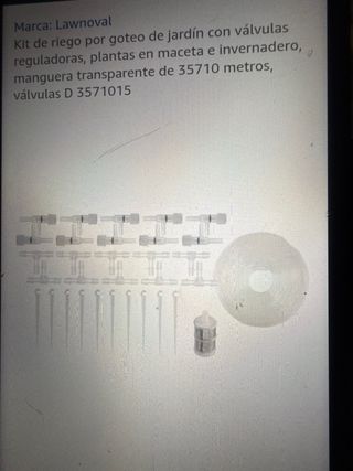 Kit de riego por goteo para jardín, plantas en maceta e invernadero. - Marca: Lawnoval - Incluye válvulas reguladoras. - Manguera transparente de 35710 metros. - Válvulas D 3571015.