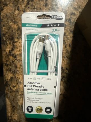 Cable de antena coaxial de 2 metros de longitud. - Conector coaxial macho en ambos extremos. - Ideal para TV y radio. - Compatible con UHD 4K HDR. - Contactos dorados para mejor señal.