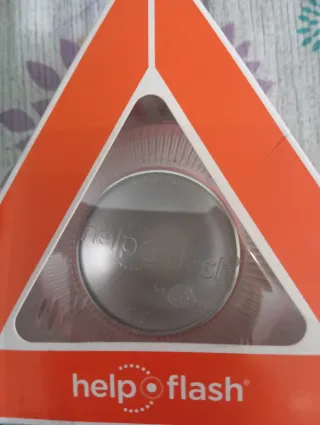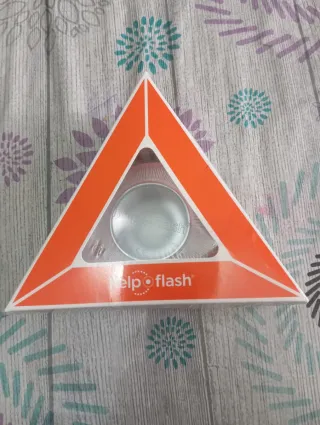 Señal luminosa de emergencia Help Flash V16. - Forma triangular naranja con ventana transparente. - Logotipo de la marca visible. Nuevo con pila solo se abrió para comprobar .