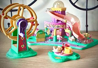 Se retira en persona ESTE DOMINGO: Oferta Navidad, precio especial por fiestas ✨💫 Set de parque de atracciones vintage de Polly Pocket, original de los años 90 🍭 - Incluye noria y tobogán desmontables y desplegables. - Base con tazas de té. - Colores vibrantes y diseño detallado. 🧍♀️ Incluye una muñequita original de regalo. 🎁 IMPORTANTE: Se vende al precio que indica en el anuncio. Muchas gracias por su atención ☺️