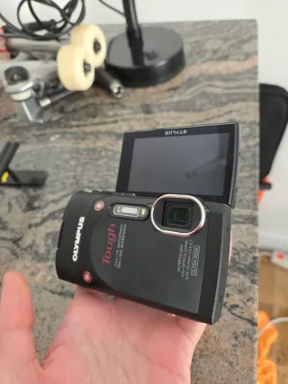 Cámara digital Olympus Tough, diseñada para resistir condiciones extremas. - Sumergible hasta 10 metros. - Resistente a caídas desde 2.1 metros. - Zoom óptico. - Lente Ultra Wide.