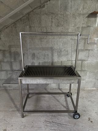 Parrilla/Barbacoa fabricada 100% en acero inoxidable. - Estructura robusta y duradera. - Varilla flotante de 8mm. - Diseño profesional para exteriores. - Fácil de mover gracias a sus ruedas.