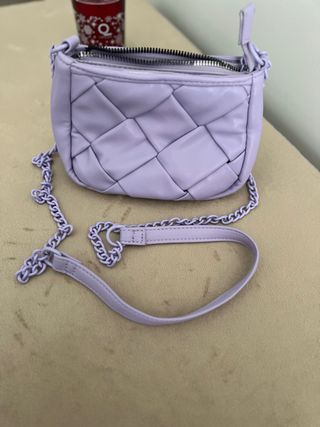 Bolso de hombro con diseño acolchado y tejido trenzado. - Asa de cadena y correa ajustable. - Cierre de cremallera. - Medidas: 12 cm alto x 17 cm ancho).