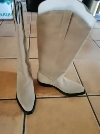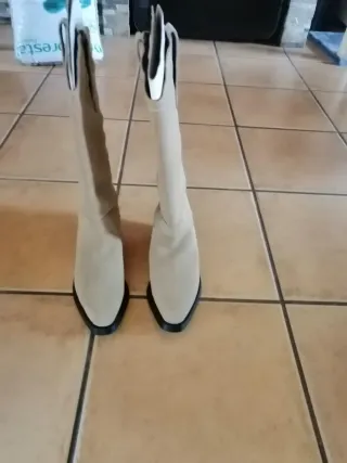 Botas de estilo cowboy de piel. - Diseño de caña alta. - Punta afilada. - Tacón grueso.