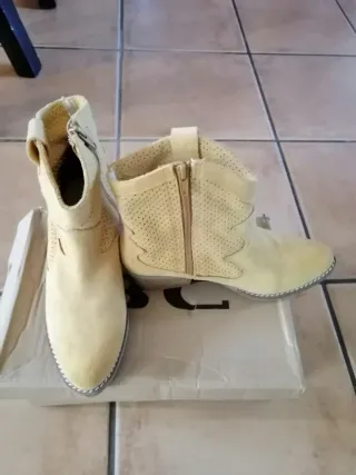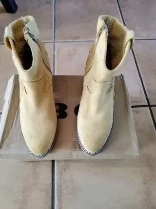 Botines de piel con un diseño inspirado en el estilo cowboy. - Material: Piel. - Acabado perforado. - Cierre de cremallera lateral.envio por in post
