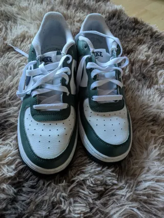 -Talla 39. Zapatillas deportivas junior de la marca Nike, Air Force, blanco y verde, en estado impoluto, sin apenas uso. 35€ - Talla 39 1/3. Zapatillas deportivas blancas Adidas. En estado impoluto también. Sin apenas uso. 25€.