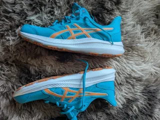 Zapatillas deportivas Asics. - Azules y naranja 25€. Talla 40. Están casi sin estrenar, pasarían por nuevas. Impolutas. - Negras, 12€, talla 40. Están en muy buen estado aunque estás si están usadas. Los dos pares por 30€.