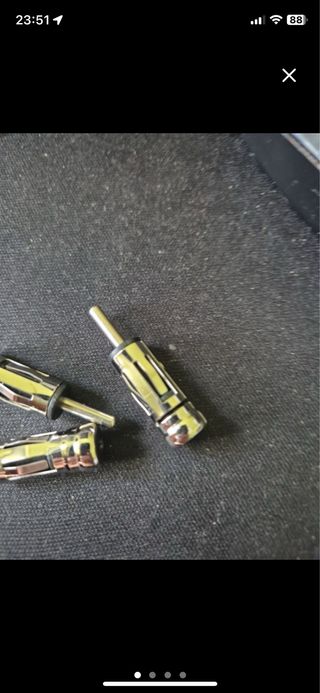 Adaptador de antena para coche, ideal para conectar tu equipo de audio. - Diseño metálico plateado. - Conexión segura y duradera. -3€ cada uno oh 9€ los 3