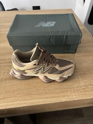 Zapatillas New Balance en talla 40. - Diseño moderno en tonos beige y marrón. - Detalle del logo 'N' en contraste. fue un regalo pero me quedan un poco grandes que usó el 39.