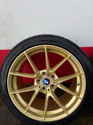 Se venden llantas BMW réplica estilo CS - Tamaño: 19 pulgadas. - Color: Dorado. - Diseño: Réplica CS. 8.5X19 5X120 ET34 72.6 9.5X19 5X120 ET41 72.6 Con neumaticos dunlop sport max, delanteros 245/25/19 al 70% y traseros 265/35/19 al 30%