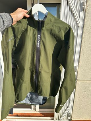Chaqueta super fina impermeable y cortavientos de ciclismo GOREWEAR con GORE-TEX Performance ePE (ultima membrana creada) en color verde oliva.Diseñada para ofrecer una máxima protección de 28.000 de columna de agua a la par con la transpirabilidad. Ideal para tus rutas más exigentes.Talla ajustada (racing) una XL pequeña de torso, equivalente a una L normal.Super comprimible y liviana.Tacto de calidad. -Logo GOREWEAR en pecho y parte baja trasera. -Puños adaptativos gracias a su semi goma que incorpora. -Detalles reflectantes en mangas, torso y trasero (logos incluidos). -Cierre de cremallera frontal impermeable y completa YKK
